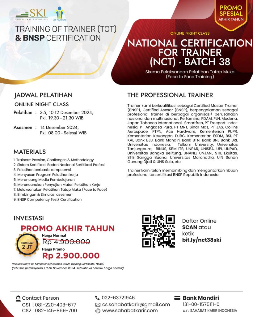 National Certification For Trainer (NCT) Batch 38 – BNSP