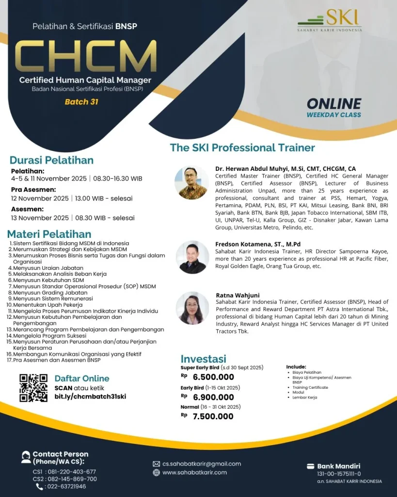 PELATIHAN & SERTIFIKASI: CERTIFIED HUMAN CAPITAL MANAGER (CHCM) Batch 31